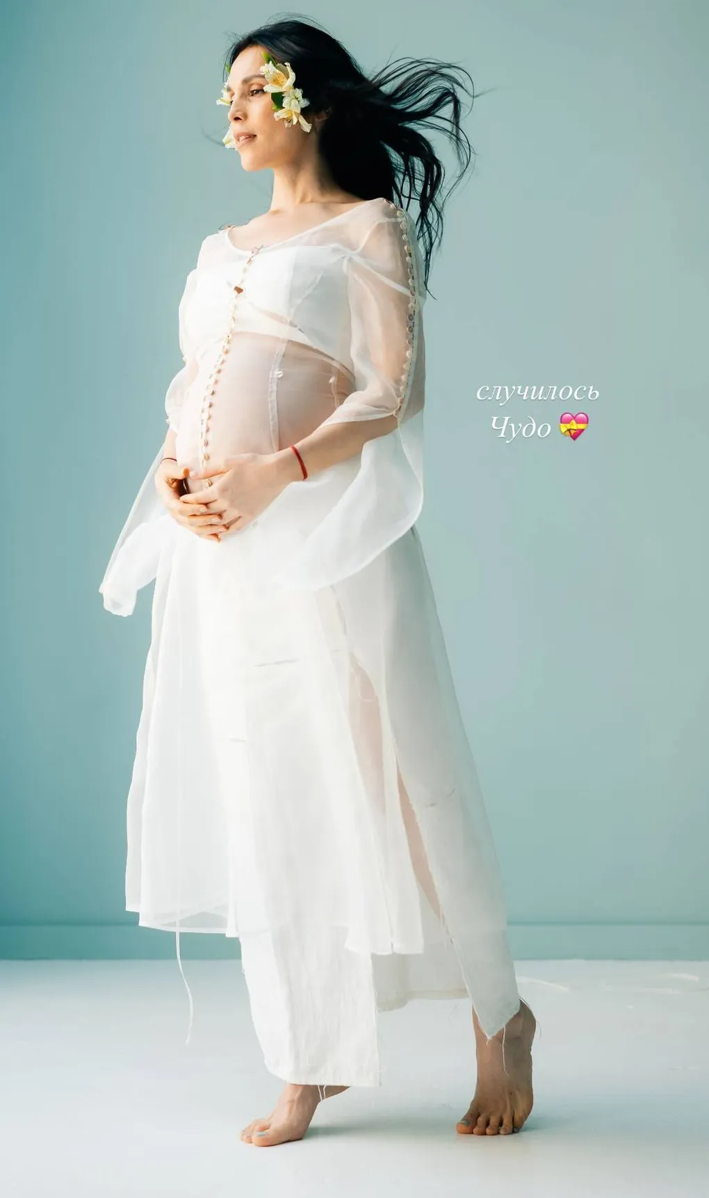 Сати опубликовала фото в нежном образе с заметно округлившимся животом. Предположительно, она находится на третьем триместре беременности. Певица откровенно призналась, что путь к материнству был непростым: судя по всему, она долгое время она не могла забеременеть.