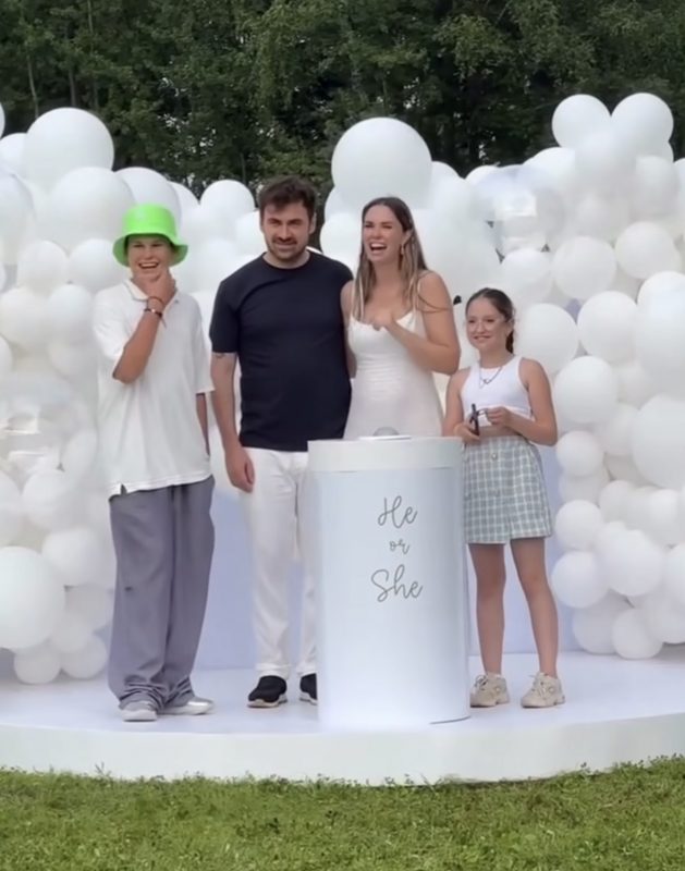 Агата Муцениеце и её жених, музыкант Петр Дранга, устроили нежное гендер-пати, на котором впервые рассекретили пол своего будущего малыша. Торжество прошло в узком кругу близких и друзей, среди которых, к удивлению пользователей оказались оба ребёнка актрисы от прошлого брака: дочь Мия, которая живёт с ней, и старший сын Тимофей, который с августа прошлого года проживает с отцом и новой семьёй. Накануне беременная артистка впервые за несколько месяцев воссоединилась с 13-летним мальчиком на фоне судебных разбирательств с Прилучным.