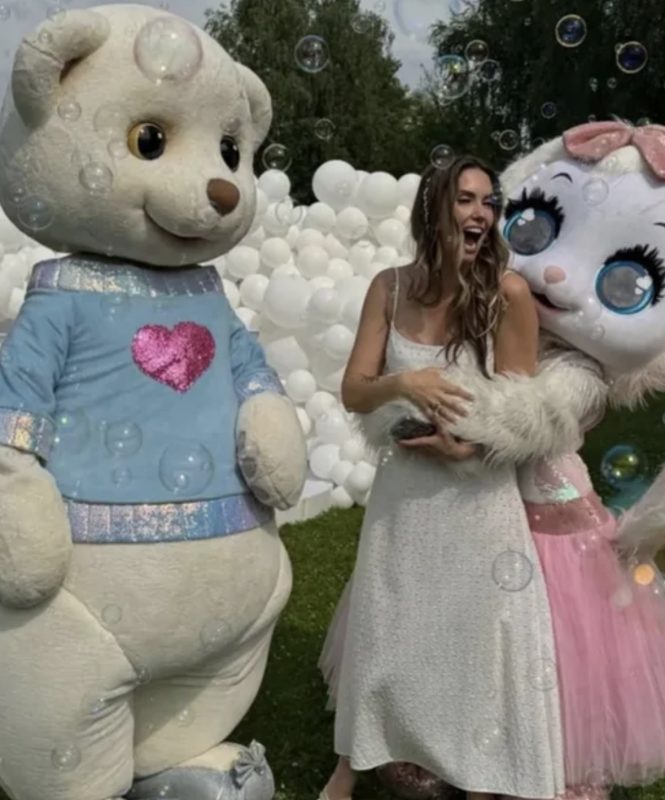 Фото с праздника опубликовала актриса Наталья Земцова, на котором видно, что актриса обнимает ростовую куклу розового цвета.