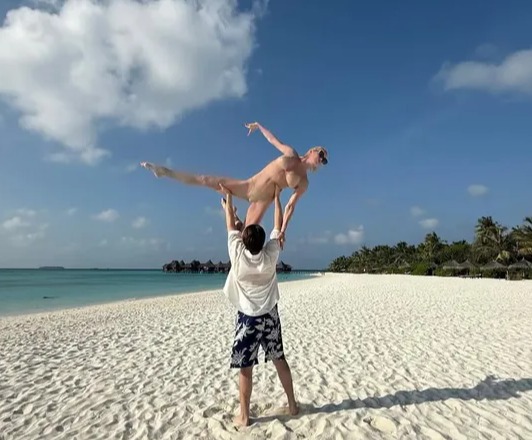 «В руках этого мужчины я всегда и везде чувствую себя надёжно и уверенно. Даже на Мальдивах, на прекрасном острове. Решили добавить в него немного творчества. Люблю быть на высоте», ‒ подписала снимок артистка. На одном из кадров возлюбленный Анастасии держит её на руках, пока она грациозно парит в воздухе. Балерина выбрала телесное бикини, создающее эффект голого тела. Привыкшие к эпатажным образам поклонники пришли в восторг от этого кадра.