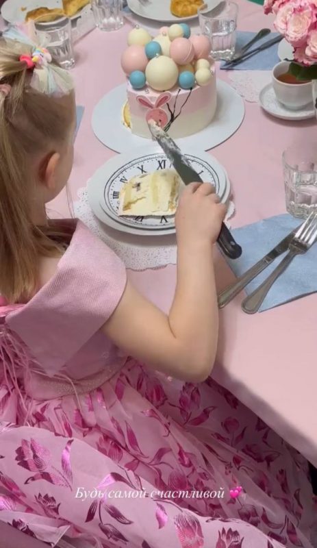 Кадрами с детского утренника поделилась сестра Милы, Анна Заворотнюк. Девушка сделала фото с большой плюшевой игрушкой и букетом роз. Также она показала девочку со спины во время чаепития - семья всегда старалась скрыть младшую дочь актрисы от посторонних глаз. Мила нарядилась в розовое платье. В розовых тонах был украшен и праздничный стол. Анна сняла, как сестра снимает с торта шоколадный шар.