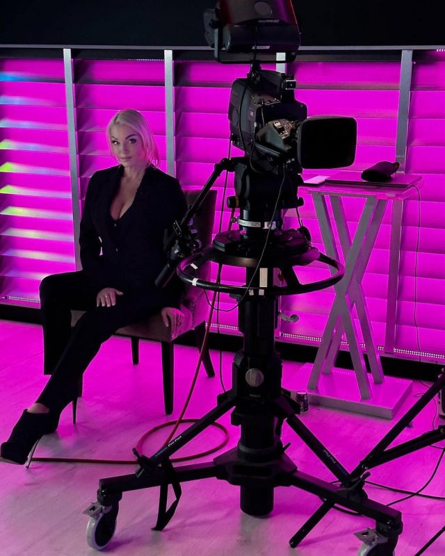 Впрочем, изменения коснулись не только стрижки и обуви знаменитости. Для появления на голубом экране спортсменка отказалась от провокационных нарядов, стразов, перьев и прочих сомнительных элементов повседневного образа – вместо этого она надела строгий черный костюм, состоящий из брюк, пиджака и жилета с глубоким декольте.