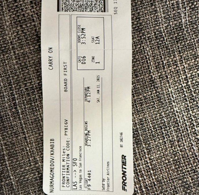 Помимо самого Хабиба, на злополучном рейсе находились несколько его подопечных. По некоторым данным, сопровождающие спортсмена также забрали свой багаж и покинули самолет вместе с ним. Авиакомпания Frontier Airlines, на борту которой произошёл этот инцидент, уже в курсе случившегося. Пресс-служба компании заявила, что они уже проводят расследование, о чём сообщили в комментариях под постом Нурмагомедова.
