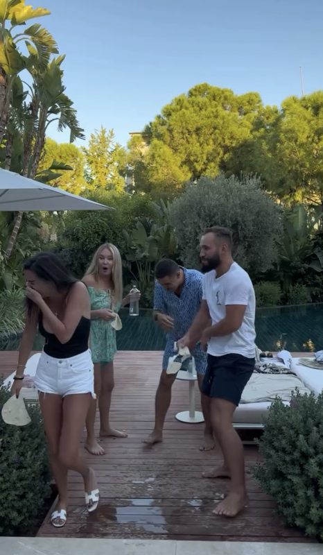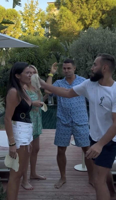 В этот раз телезвезда решила удивить публику необычным юмористическим контентом. Компания устроила челлендж, суть которого играть в «камень-ножницы» и по очереди бить друг друга лавашом. Если бьют тебя - то не засмеяться и не пролить воду. Интересно, что Сергей Пынзарь лишь слегка ударил жену, чего не скажешь о Николае Сердюкове. Кажется, что блогер постарался и вложил в удар всю силу - даже его лепешка порвалась.