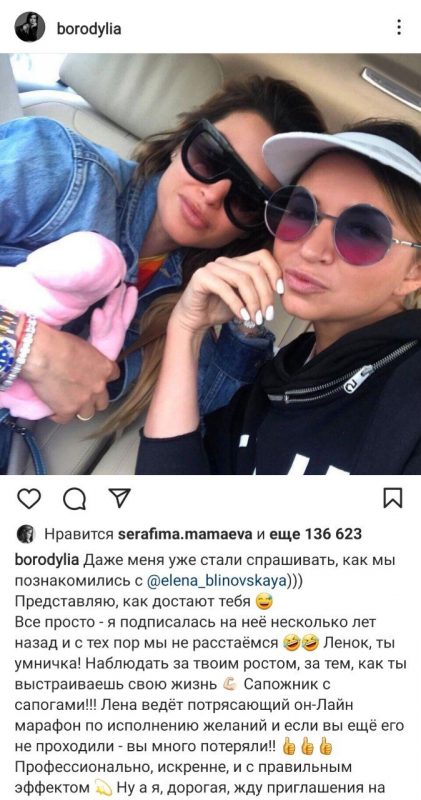 Скандал вокруг одной из самых богатых блогеров страны Елены Блиновской, кажется, не обсудил только ленивый. Однако многие пользователи ждали, когда арест не платившей налоги «Феи желаний» прокомментирует ее близкая подруга Ксения Бородина. Известно, что звезда «Дома-2» дружит с Блиновской с 2017 года. Как рассказывала сама Ксения, она подписалась на Елену в соцсетях и была восхищена ее быстрому росту. Также в своем блоге Бородина заявляла подписчикам, что те, кто еще не прошел известный марафон Блиновской, - многое потеряли.