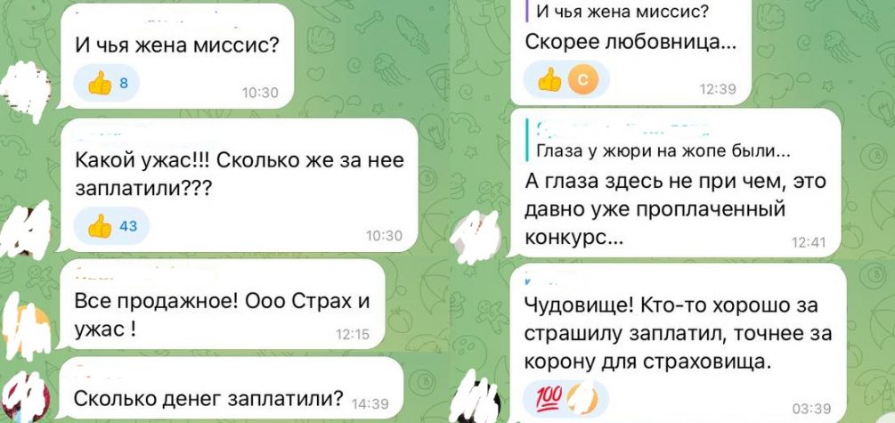 «И чья жена миссис?», «Какой ужас! Сколько же за нее заплатили?», «Все продажное! Страх и ужас», «Чудовище! Кто-то хорошо за страшилу заплатил, точнее, за корону для страшилища», - недоумевают подписчики нашего Telegram-канала.