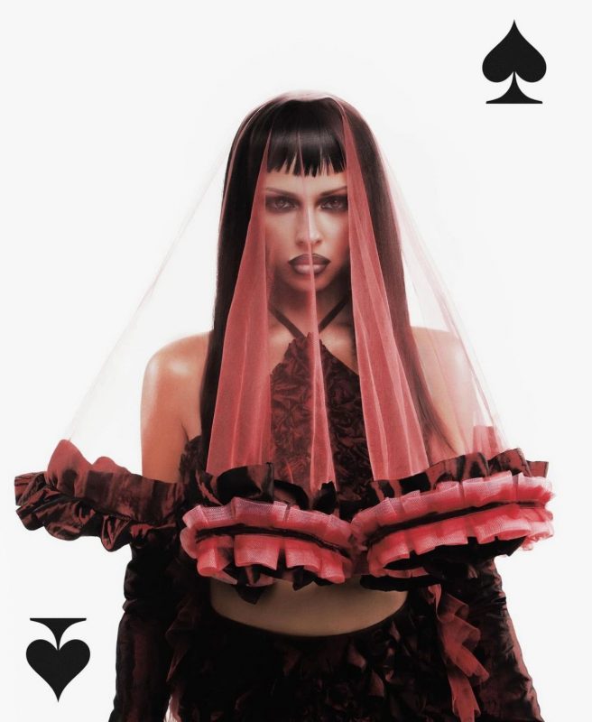 Последняя публикация вовсе привела поклонников Нюши в шок. На День всех влюбленных исполнительница хита «Чудо» перевоплотилась в образ Пиковой дамы: снялась с темными волосами, короткой челкой и готическим макияжем. Примечательно, что в один из самых романтичных дней в году певица не посвятила пост любимому мужу, но зато опубликовала мрачные снимки.