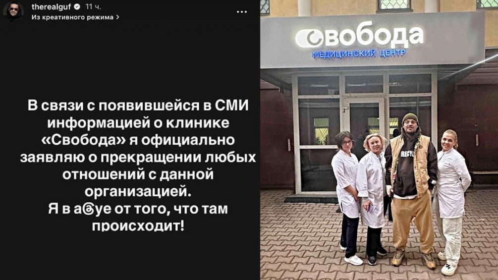 «В связи с появившейся в СМИ информацией о клинике «Свобода» я официально заявляю о прекращении любых отношений с данной организацией. Я в *** от того, что там происходит», - писал Гуф.