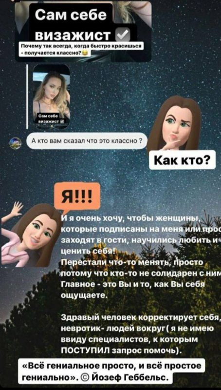 Миллионная аудитория жены футболиста не оценила шутку Костенко и обвинила её в оскорблении участников СВО. По всей видимости, многодетная мама испугалась реакции в комментариях и удалила публикацию, но Интернет помнит всё. Возмущённые пользователи отправили скандальное видео Екатерине Мизулиной, которая быстро отреагировала на их сообщения. Глава Лиги Безопасного Интернета. Вместе с видео Мизулина прикрепила к своему посту скриншот из блога Костенко, в котором во время спора с подписчиками она цитирует Йозефа Геббельса.