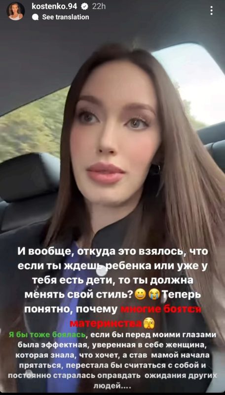 «Откуда взялось, что, если ты ждешь ребенка или у тебя уже есть дети, ты должна менять свой стиль? Теперь понятно почему многие боятся материнства», — заключила Анастасия.