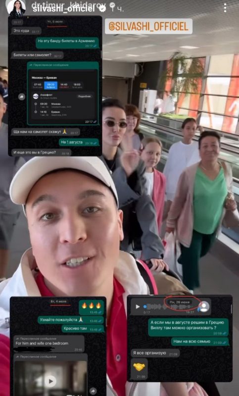 Как стало известно, Тимур Хайдаров решил сделать паузу в своей деятельности. В разгар скандала звездный врач улетел за границу. Оказалось, что у него давно была запланирована поездка в Грецию всей семьей. Чтобы избежать слухов о том, что врач якобы сбежал из страха суда, Тимур предоставил скриншоты переписок за июнь, в которых он планирует отпуск.