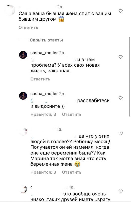 В доказательство подписчики прикрепили скриншоты сторис девушки, на которых в эти выходные нередко появлялся Свик. Кроме того, одна из подписчиц прямо написала под фотографией Моллера, что его «бывшая жена спит с бывшим лучшим другом».