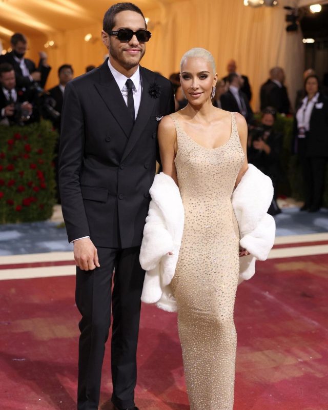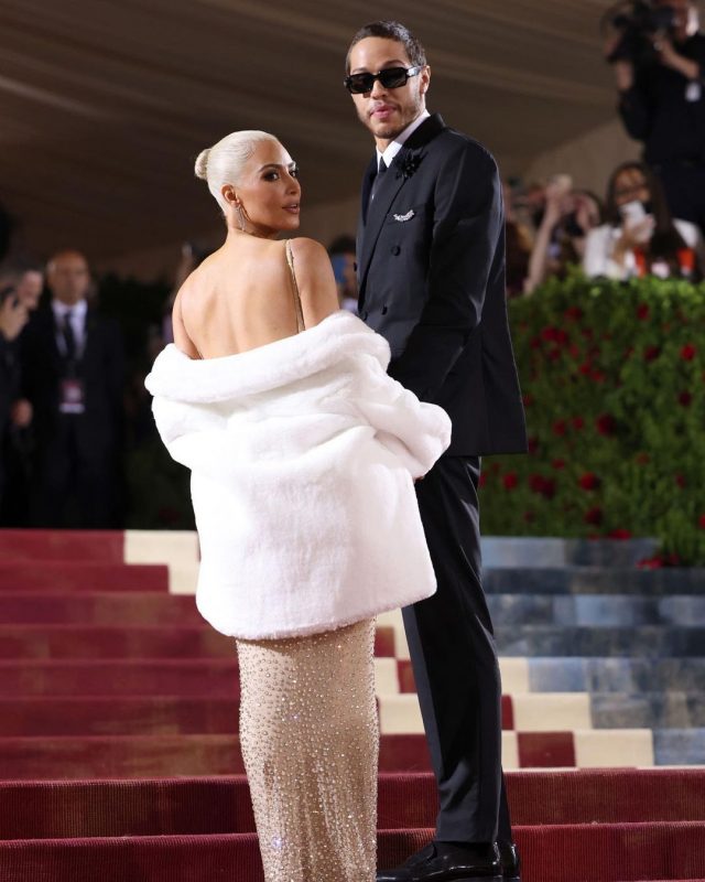 Интересно, что телезвезда арендовала платье только для выхода по красной ковровой дорожке с новым бойфрендом Питом Дэвидсоном и по ступенькам музея - затем она переоделась в точную копию платье. На видео заметно, что Ким еле ходит в наряде Монро, но пройти по лестнице ей помог возлюбленный.