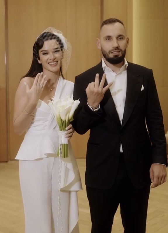 3 июня телеведущая Ксения Бородина вышла замуж в третий раз - её избранником стал Николай Сердюков, с которым она познакомилась на съемках шоу «Последний герой». Сегодня Ксения обрадовала поклонников и поделилась видео с тайной церемонии. Влюблённые расписались во Дворце бракосочетаний № 1 в «Барвиха Luxury Village» и пригласили на праздничный банкет только самых близких. Для важного события Ксения выбрала элегантный белый комбинезон турецкого бренда Vakko за 120 тысяч рублей, дополнив образ шляпкой с вуалью и сферической перламутровой сумкой Zara, напоминающей жемчужину. Бородина известна своей любовью к турецким сериалам и при выборе свадебного образа вдохновлялась эстетикой «Клюквенного щербета». Жених надел на роспись классический чёрный костюм, который он купил в бутике во время поездки в Италию. Обручальные кольца пара приобрела от бренда Tiffany.