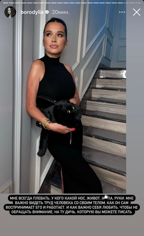 Однако вопросы подписчиков сильно возмутили Бородину, которая регулярно следит за своими фигурой и питанием, из-за чего она дерзко ответила им: «Девочки, а вы что, обтягивающие платья такие не носили?! Попробуйте и сразу поймете, что такое расслабит живот хоть на секунду. Вы не оставляете публичным людям право оставаться людьми. Обычными! С человеческими изъянами!».