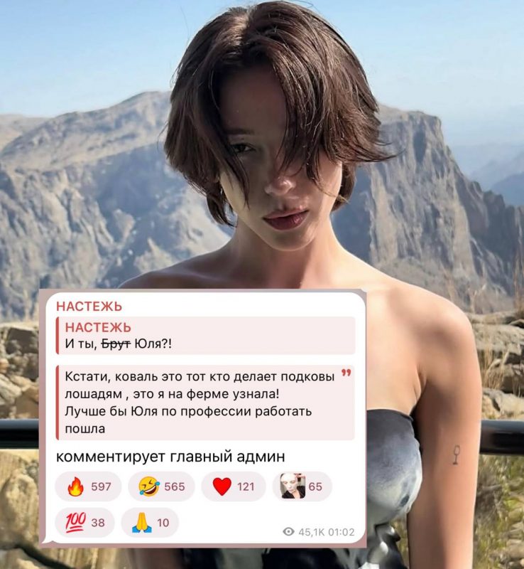 «И ты Брут, Юля! Кстати, коваль - это тот, кто делает подковы лошадям, это я на ферме узнала! Лучше бы Юля по профессии работать пошла», - намекнула блогерша.