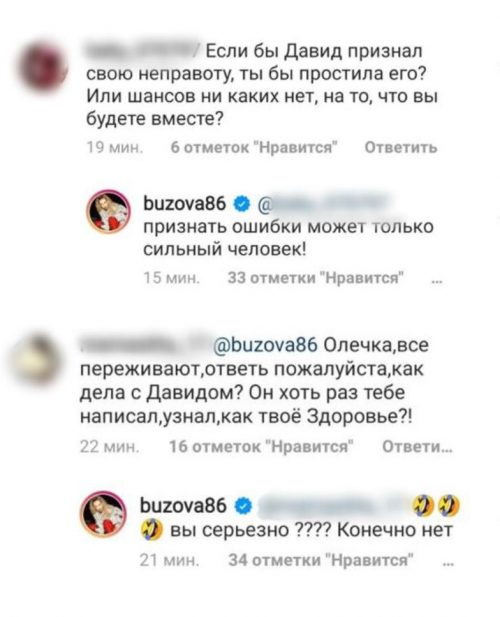 Позднее Ольга рассказала в Instagram, что не поддерживает общение с экс-возлюбленным, отрицая возможность примирения с ним. Также она прокомментировала обвинения матери Давы в её адрес.