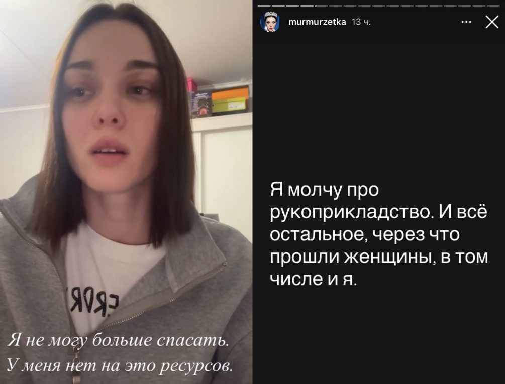 «Я молчу про рукоприкладство и всё остальное, через что прошли женщины, в том числе и я. По глупости и от большой любви к человеку я отказывалась от своих личных возможностей - от большинства кастингов, фотосессий, походов на кинофестивали и театральные фестивали. Потому что в моей семье они считались неприемлемыми, и, если я туда ногой шагну, я должна была непременно снять кольцо. Я была рядом 24/7 с человеком, который был на финансовом и моральном дне», - пожаловалась девушка.