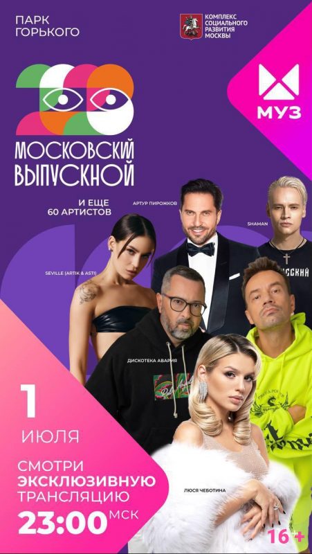 В ночь с 1 на 2 июля состоится эксклюзивная трансляция «Московского выпускного 2023» из Парка Горького, организованного Комплексом социального развития Москвы.
