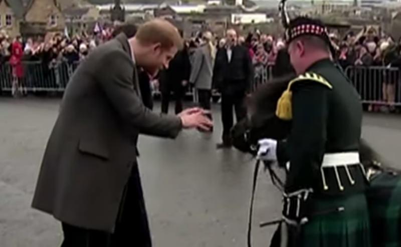 В Сети распространилось милое видео «знакомства» черного пони и принца Гарри, который должен вскоре обзавестись статусом «женат». Вместе со своей невестой Меган Маркл он отправился в Шотландию. Именно в момент официального приема, когда за небольшим заборчиком на улице находились сотни людей, принц Гарри решил потискать милое животное. Только не тут-то было. Пони с родословной по имени Круахан IV все норовил покусать члена королевской семьи. Что и сделал. Предательский кусь сняли западные СМИ. Однако сам Гарри от этого совсем не расстроился, а наоборот - умилился. Но все-таки «в отместку» подергал слегка за ухо шкодливого коня.
