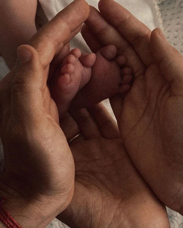 «Наш маленький принц прибыл. Поделитесь вашими тремя любимыми именами для мальчика», - подписали первый снимок, на котором держат ножки своего малыша, супруги.