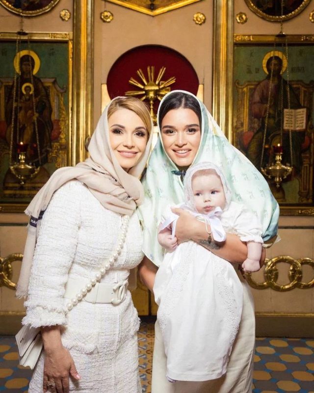 В своих социальных сетях блондинка опубликовала серию снимков из собора, где и проходило таинство. На одной из фотографий женщина позировала с дочерью, а на другой – в компании наследницы и ее крестной матери, близкой подруги Ксенией Бородиной.