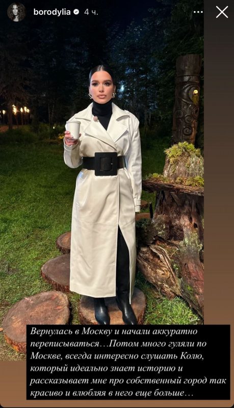 По словам телезвезды, общаться они начались уже после съемок шоу. Когда Ксения вернулась в Москву, она продолжала переписываться с Николаем, вскоре они начали ходить на свидания. Блогер поразил Бородину своим кругозором и знаниями истории. Пара в отношениях два месяца, и телеведущая активно делится своим счастьем в соцсетях.
