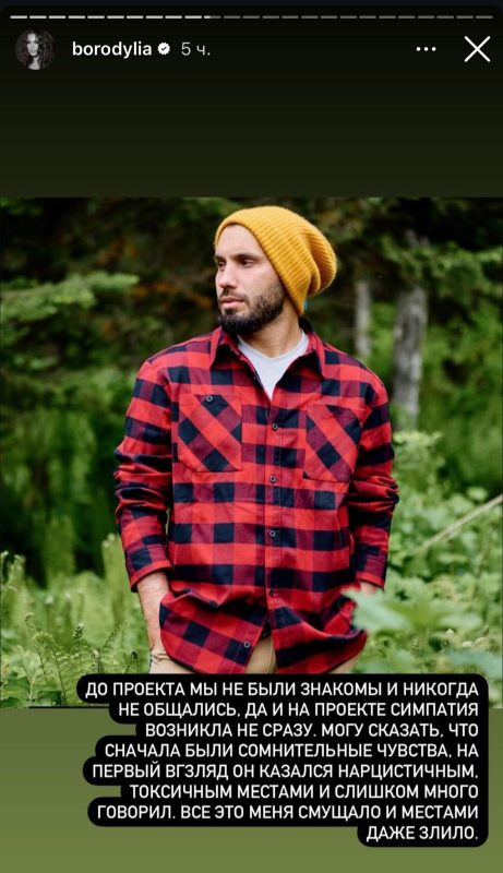 «На проекте симпатия возникла не сразу. Могу сказать, что сначала были сомнительные чувства. На первый взгляд он казался нарциссичным, токсичным местами и слишком много говорил. Все это меня смущало и местами даже злило», — рассказала телеведущая.