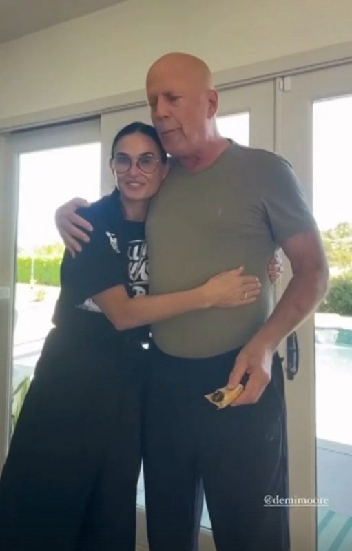 Недавно она вернулась из Испании и вновь приехала в гости к Брюсу. По данным СМИ, актриса была «убита горем» после их последней встречи. Оказалось, что звезда фильма «Пятый элемент» несколько минут не мог узнать бывшую супругу. Кадр с их встречи опубликовала одна из дочерей актера. На фото сильно постаревший Брюс целует Деми в лоб.