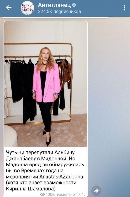 В последнее время певица Альбина Джанабаева редко выходит в свет. 42-летняя экс-солистка «ВИА-гры» все свободное время уделяет заботе о маленькой дочери, которая родилась в апреле 2022 года. На днях Джанабаева посетила презенацию дизайнера Анастасии Задориной. Фото с мероприятия попало в Сеть и вызвало бурные обсуждения. Многие не узнали певицу - Альбина появилась на публике в розовом оверсайз-пиджаке и черных брюках. Певица распустила волосы, однако пользователи обратили внимание на лицо знаменитости. Артистку заподозрили в злоупотреблении уколами красоты и сравнили с 64-летней певицей Мадонной.