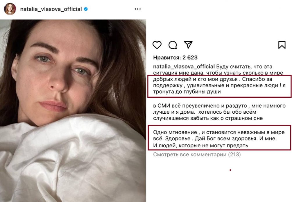 К слову, за несколько часов публикация Власовой собрала несколько сотен комментариев со словами поддержки.