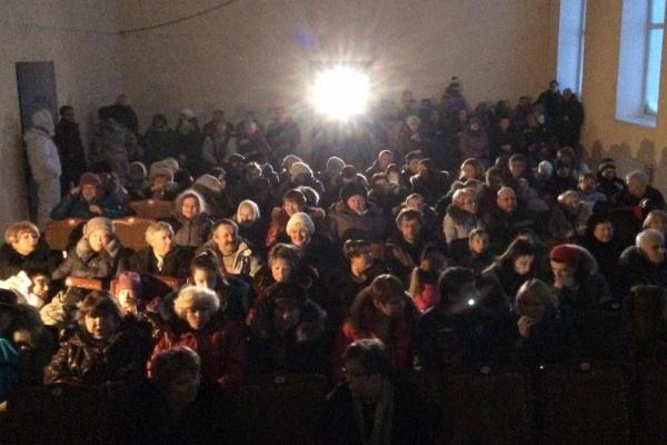 Копию официальной версии картины передал ее продюсер Александр Роднянский. В зал местного дома культуры, рассчитанный на 150 человек, пришло больше желающих увидеть, каким выглядит их поселок на большом экране, поэтому многие люди стояли у стен.