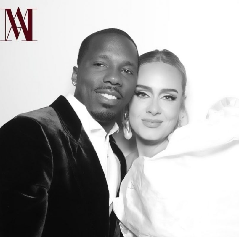 Известно, что артистка и ее, как оказалось, супруг впервые пересеклись на вечеринке по случаю дня рождения общего друга, а позже обнародовали свои отношения в июле 2021 года, когда их заметили вместе на игре «NBA». Слухи о помолвке возникли, когда артистку увидели с большим кольцом с бриллиантом, однако Адель уточнила, что просто имеет пристрастие к дорогим украшениям.