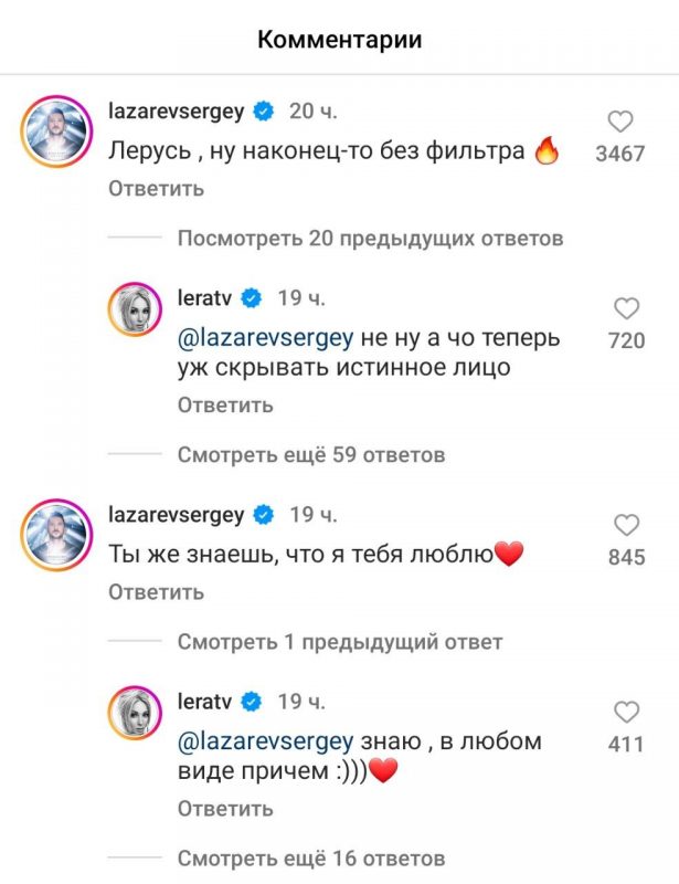 «Лерусь, ну наконец-то без фильтров», - написал артист в комментариях.