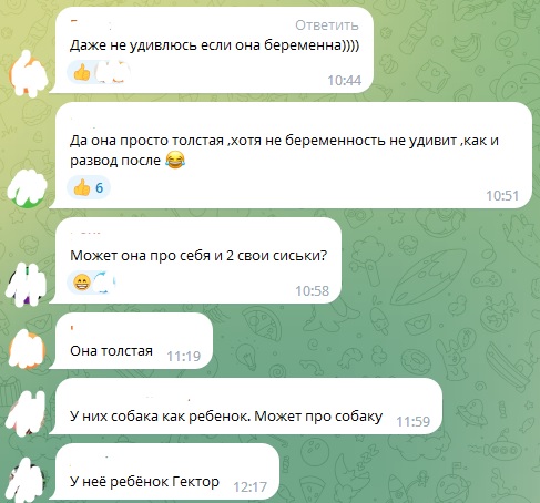 «Даже не удивлюсь, если она беременна», «У них собака как ребенок. Может, она про собаку», «У нее ребенок – Гектор (сын Анны Седоковой и бизнесмена Артема Комарова – прим.ред.)», - пишут подписчики нашего Telegram-канала.