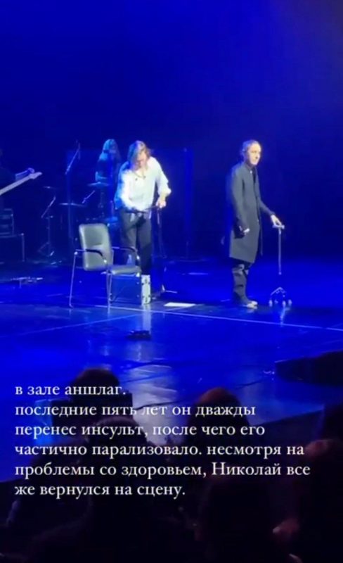 Когда зрители попросили исполнителя хита «Это здорово» остаться и спеть еще, Николай обругал их, используя ненормативную лексику. Выступать для жителей Перми продолжил Александр. Молодой певец попросил людей не обижаться, так как у Николая сильные боли, и сам начал исполнять песни перенесшего инсульт артиста. Это не сильно утешило разочарованную публику, заплатившую деньги за концерт другого певца.