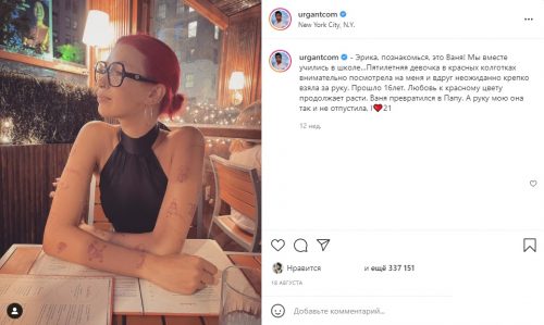 Напомним, два года назад стало известно, что дочь Урганта переехала в Нью-Йорк и там закрутила роман с афроамериканцем. Когда США охватила волна протестов и беспорядков после смерти темнокожего американца, Эрика со своим бойфрендом тоже не остались в стороне. Они вышли на митинг с плакатами: «Система имеет нас жестче, чем мы ваших дочерей». Однако русскоязычная аудитория сочла такой посыл оскорбительным, и, в итоге, возлюбленному девушки пришлось извиниться перед семьей Кикнадзе.