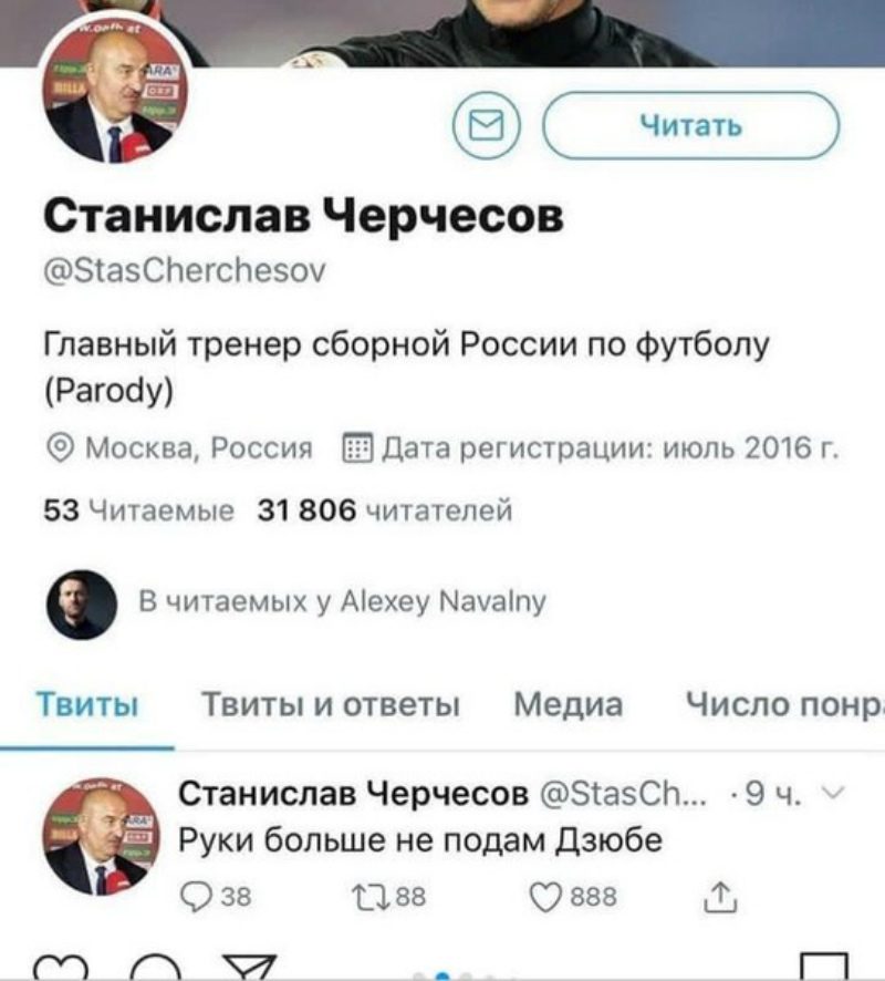 Предположили, что и у самого интервьюера, который часто задает провокационные личные вопросы героям, к Дзюбе стало на один вопрос меньше. «Руки больше не подам Дзюбе», - шутят якобы от аккаунта тренера сборной России по футболу Станислава Черчесова пользователи.