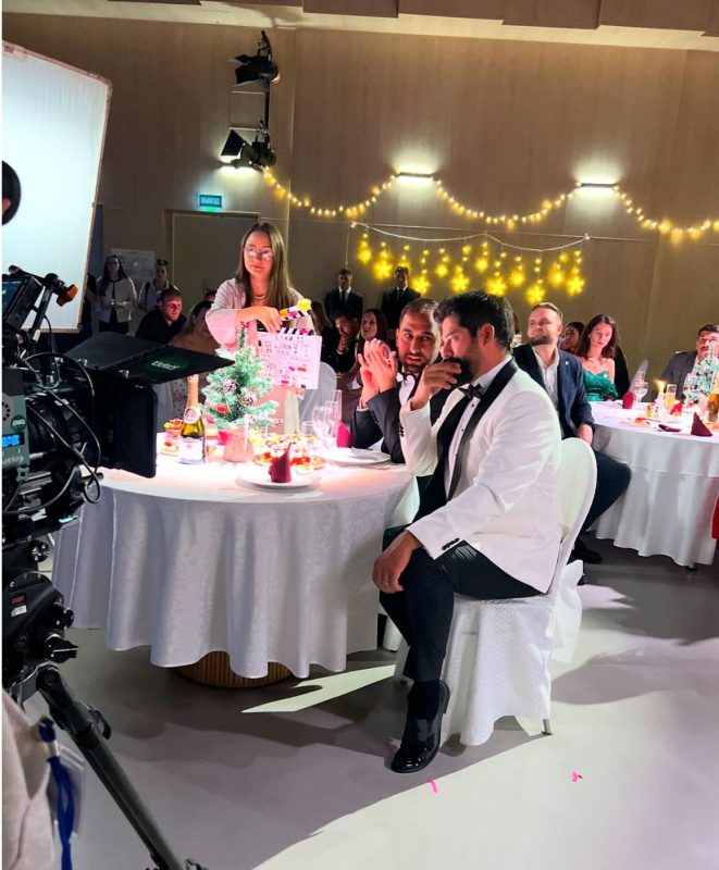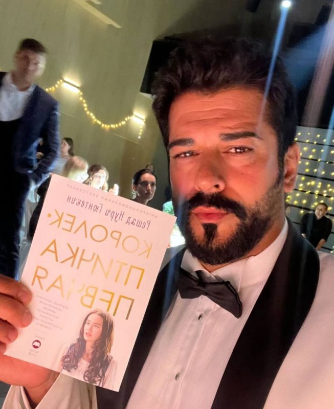 Сегодня звезда «Великолепного века» показал первые фото со съемочной площадки. Известно, что вместе с ним в фильме будет сниматься и актер Рузиль Минекаев, известный по сериалу «Слово пацана», но в этой сцене его не оказалось. На кадрах Бурак сидит за банкетным столом в белоснежном костюме с черной бабочкой. На одном из фото он позирует с книгой «Королек – птичка певчая». По данным СМИ, актер пробудет в России еще несколько дней. Гонорар звезды сериалов не разглашается, но по информации журналистов, Бурак получает от 1,5 до 3 миллионов рублей за один съемочный день.