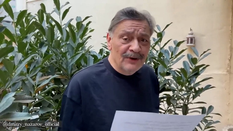 С началом СВО Дмитрий Назаров, чуть ли не ежедневно, высказывался против России. На своём ютуб-канале и в своих соцсетях артист публиковал стихи и басни собственного сочинения, в которых открыто осуждал спецоперацию по защите Донбасса. В съемках таких видео принимала участие и его жена, актриса Ольга Васильева, которая разделяет позицию мужа.