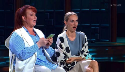 Артистки «Сборной России» Ольга Картункова и Екатерина Моргунова играли женщин, обсуждающих звезд и их социальные сети. Они показывали сцену, посвященную хейтерам в Instagram, по ходу которой зашла речь о Харламове.