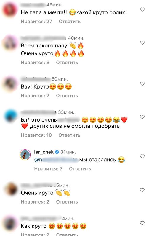 «Как офигенно! Ради этого стоит рожать много детей!», «Это просто разрыв!!», «Намного лучше оригинала!», «Это очень круто! Других слов не подобрать!», «Не папа, а мечта! Крутой ролик», «Всем бы такого отца!», - делились эмоциями фолловеры.