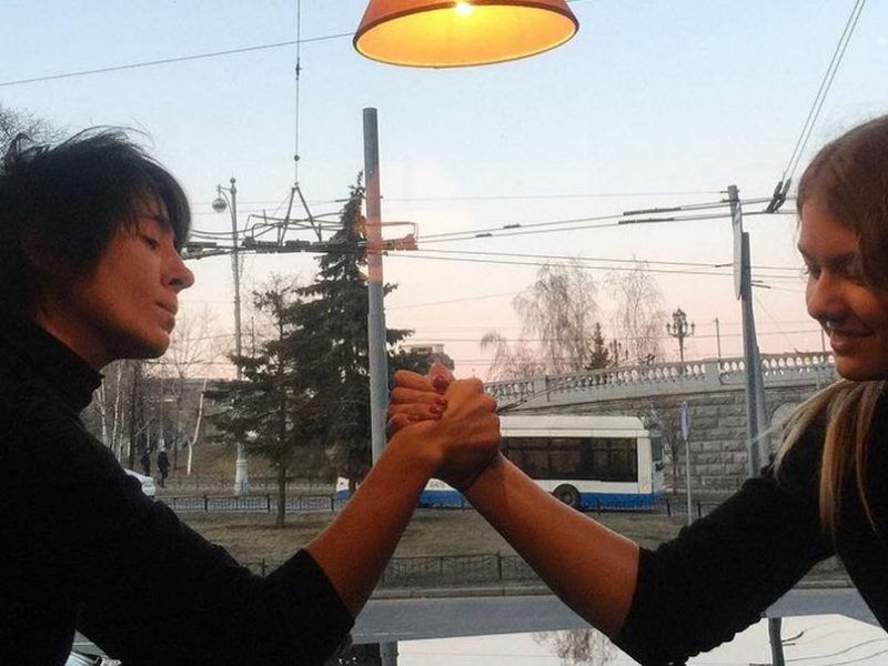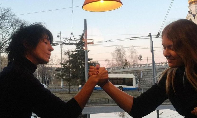 Сегодня, 26 марта, Рената Литвинова выложила в Instagram фотографию своей дочери Ульяны и подруги Земфиры. 14-летняя девушка и 39-летняя певица в черных свитерах сидят за столом, сжав руки в поединке по армрестлингу.