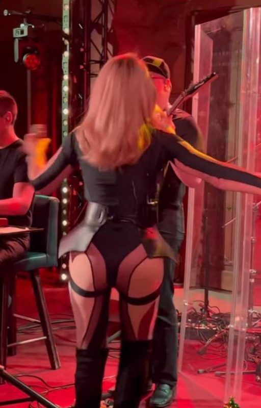«Королева шансона» облачилась в черное боди и полупрозрачные лосины, оголив плечи и «пятую точку».