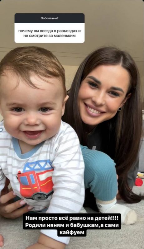 «Нам просто всё равно на детей!!! Родили няням и бабушкам, а сами кайфуем», ‒ иронично ответила Пинчук, выложив фото с младшим сыном Аланом.