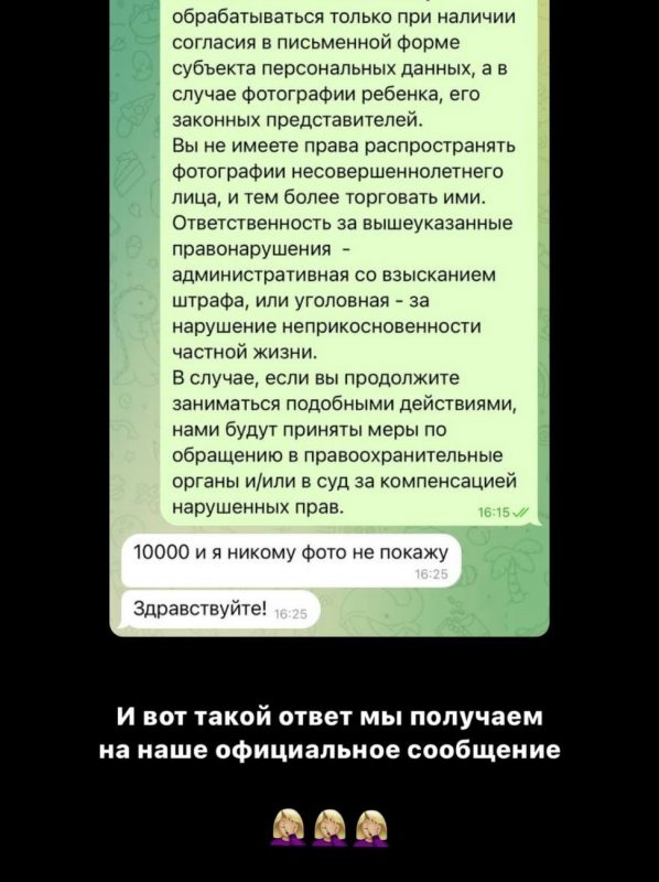 Ханна и Пашу привлекли своих юристов для подготовки обращения по этому вопросу. Они предостерегли мошенников от распространения или продажи детских фотографий без согласия родителей. За это киберпреступникам может грозить как административная ответственность в виде штрафа, так и уголовная – за нарушение неприкосновенности частной жизни.