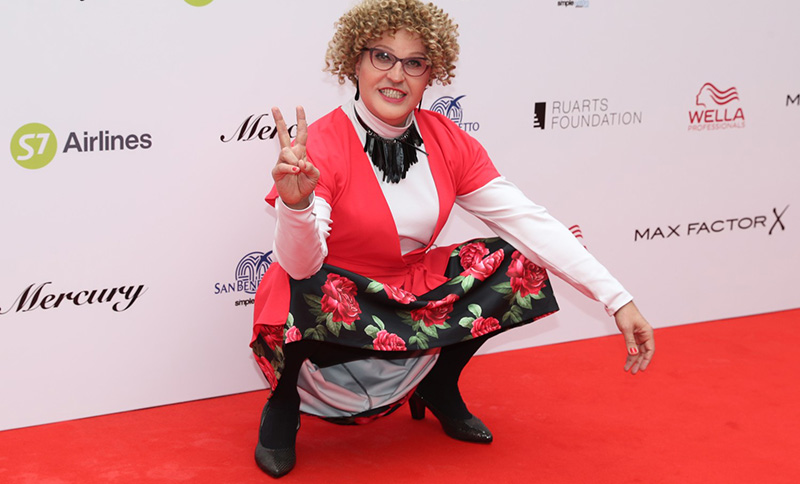 Выход Александра прошел под бурные аплодисменты и восторженные возгласы зрителей. Другие знаменитости, в том числе коллега по кинокартине Глюкоза, с удовольствием фотографировались с самой неотразимой «дамой» кинофестиваля.
