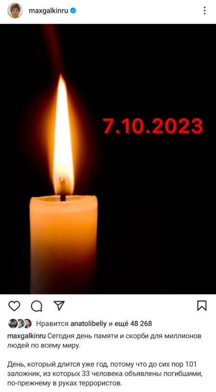 Иноагентные релоканты Максим Галкин* и Анатолий Белый*, актрисы Алена Хмельницкая и Юлия Ауг «скорбят» по погибшим в результате нападения на Израиль год назад. Об атаках Израиля на Ливан и сектор Газа молчат.