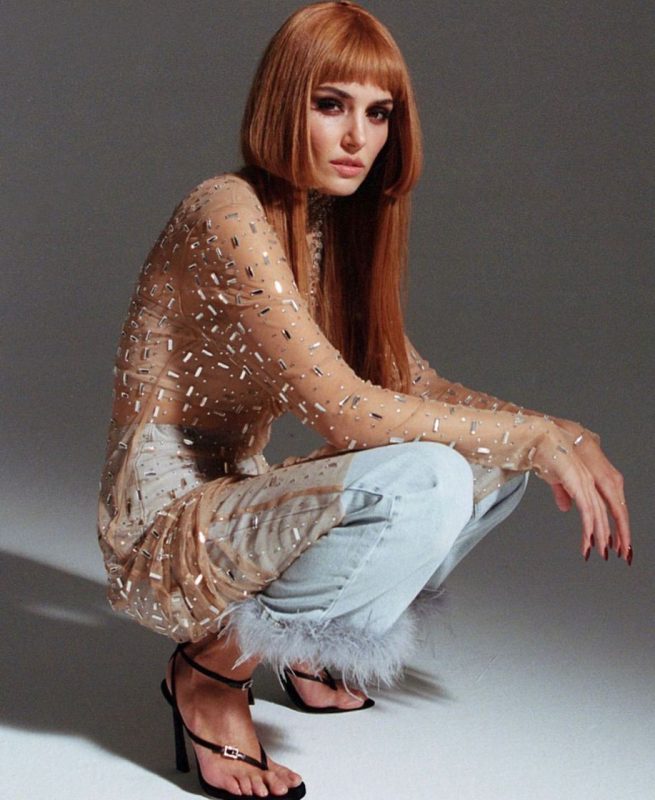 Соответствующие кадры появились на личной странице актрисы. На них Ханде позирует в блестящем нижнем белье и черной мини-юбке, усыпанной стразами. Затем Эрчел меняет образ и появляется в джинсах с перьями и прозрачном верхе. Однако оба наряда, непривычных для актрисы, дополняли рыжий парик, а также макияж в стиле «смоки-айс». Это сразу вызвало у фолловеров шквал эмоций.