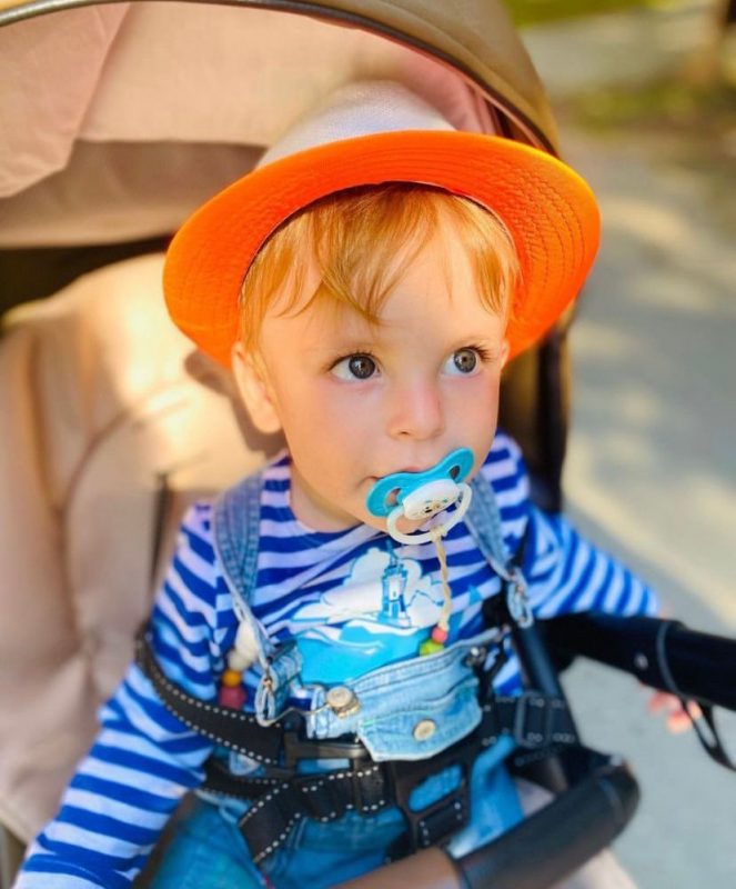 На фото малыш сидит в коляске и радостно улыбается, пока на него падают солнечные лучи. На голове мальчика милая панамка оранжевого цвета, а на теле красуется симпатичная матроска. Пользователи Сети отмечают, что малыш будто светится и излучает максимально положительную энергетику. Многие отмечают, что своей лучезарностью и жизнерадостью он пошел в родителей.